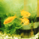 属性:ギョピは「金魚」 マキマキーは「石巻貝」 性別:不明 年齢:年齢、生年月日、ともに不明! 性格:ギョピはかなりのどう猛。とりあわけ食べ物には目がない。お腹がすくとなんでも口に入れ 「エビビ」(エビ)まで食べてしまった。マキマキーはおとなしくマイペース。水槽のこけを一 生懸命食べている。 習性:ギョピは人が来ると、とにかくよってくる。そして餌をねだる。いつもいつもねだる。 餌をくれないと水草を丸裸にしてしまう。マキマキーはとにかくマイペース。特になし。 特徴:とにかくギョピはまぎれもなく金魚。とにかくマキマキーはまぎれもなく石巻貝。 |