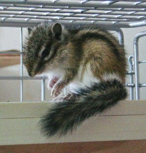 属性:シマリス 性別:オス♂ 生年月日:2010年3月2日 性格:とにかくせっかち。5秒たりとも同じ所にいない。(リスはみんなそうかもしれないが・・・) でも、餌を食べているときは、何をされても文句を言わない。ちょっとこだわり派。 習性:リスは普通昼行性のハズだが、しゅうに関しては、寝たいときに寝て、起きたいときに起 きる習性。 特徴:しっぽをふりふり、後ろ足をタンタンと踏みしめて警戒態勢を取って人を威嚇する。実際 には遊びたいのか、どうしたいのか解析不能! |